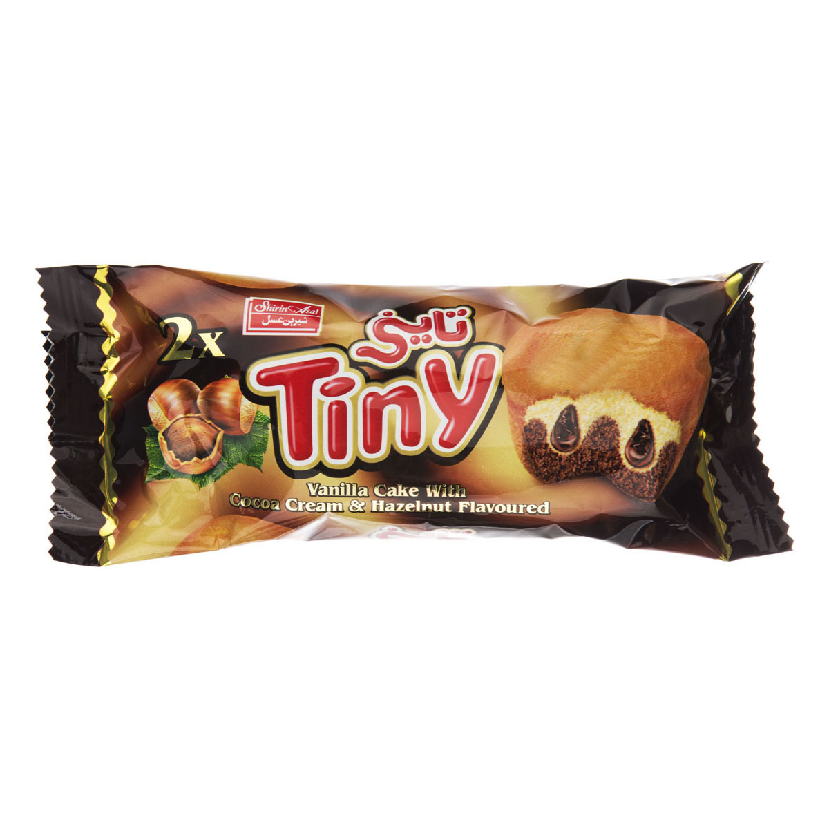 کیک دو قلو دو رنگ با مغزی کرم کاکائو با طعم فندق تاینی حجم ۶۰ گرم
